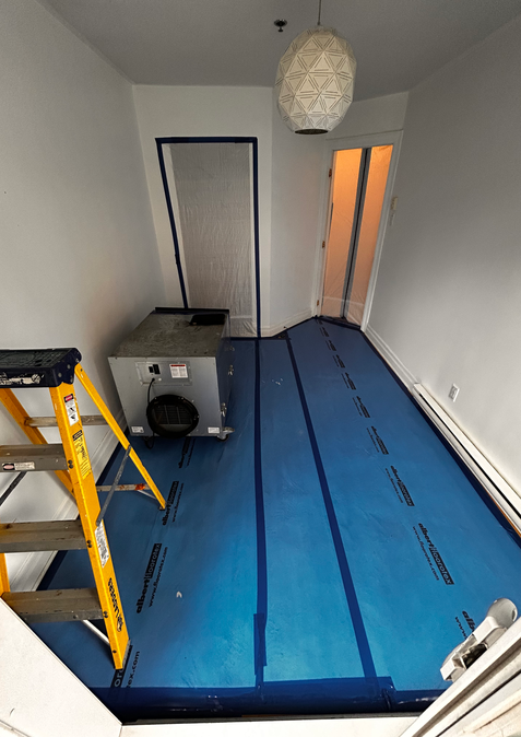 Décontamination majeure après sinistre incluant la réparation complète d’une infiltration d’eau par les balcons. Les travaux ont consisté à sécuriser les zones affectées, éliminer les matériaux contaminés, assécher et assainir la structure, puis corriger la source de l’infiltration afin d’assurer la durabilité, la sécurité et la conformité du bâtiment.